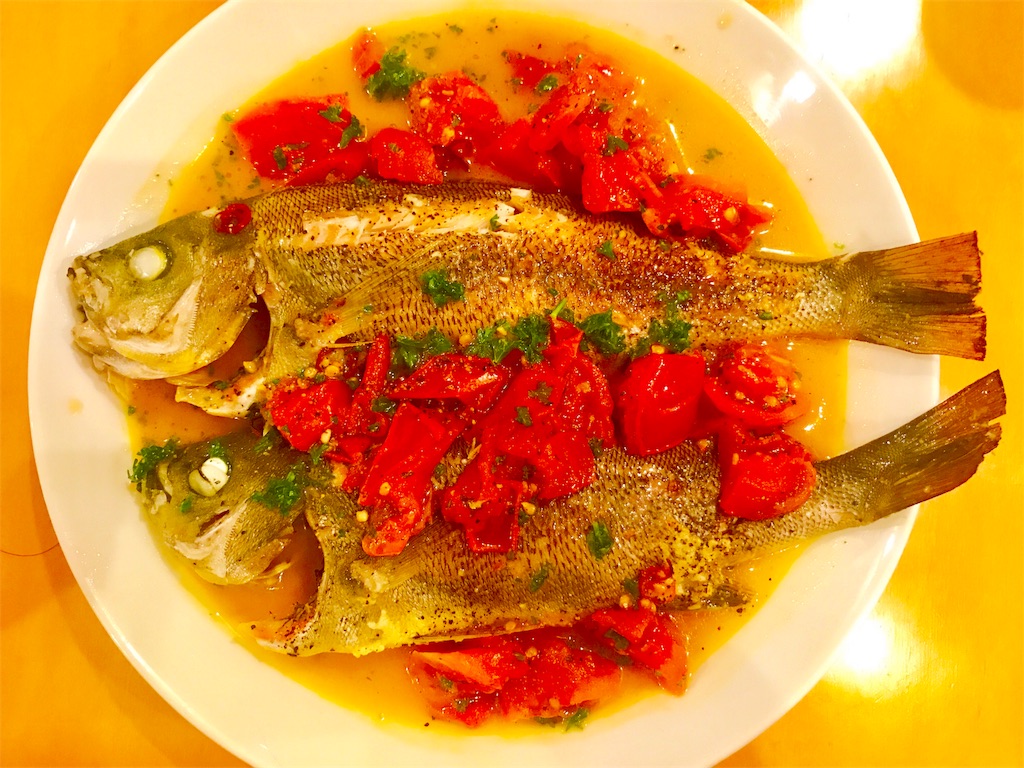 アクアパッツァ。勢い余って二尾購入したものの、1人では食べきれずリゾットに落とし込みました。