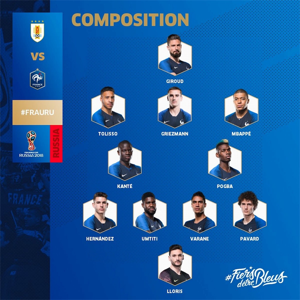 La composition de l'Equipe de France。注目はMbappé。